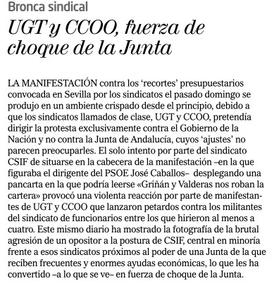 Es desde ahora cuando los trabajadores deben decidir a quien apoyar y en las elecciones sindicales próximas a quien dar su voto, porque han dejado claro desde ugt y ccoo que no defienden a los trabajadores sino al gobierno del duo griñan-valderas.